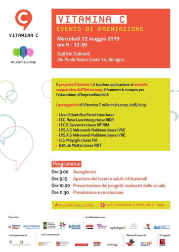 Vitamina C si inserisce nell’ambito del progetto Millennials.coop, con l’obiettivo di favorire tra gli studenti una maggiore consapevolezza su processi, competenze e abilità con un particolare focus sullo sviluppo della capacità imprenditoriale. Il progetto si struttura sulle linee tracciate dal framework europeo EntreComp (Entrepreneurship Competence Framework) Quadro di Riferimento per la Competenza Imprenditorialità.